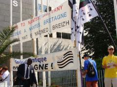 Des Bretons de Loire-Atlantique contestent, à l'entrée du Forum des Droits de l'Homme à Nantes