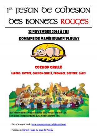 Le comité Bonnets rouges Scorff et Blavet organise un festin de cohésion, au Domaine de Manéhouarn, à Plouay, le 22/11/2014, à partir de 11 heures.