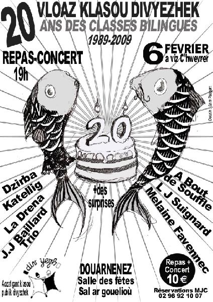 20 vloaz, ret eo lidañ-se ! 20 vloaz eo klasoù divyezhek Douarnenez e 2009. Evit lidañ an deiz-ha-bloaz-se e grogo ar gouelioù gant ur pred-sonadeg :