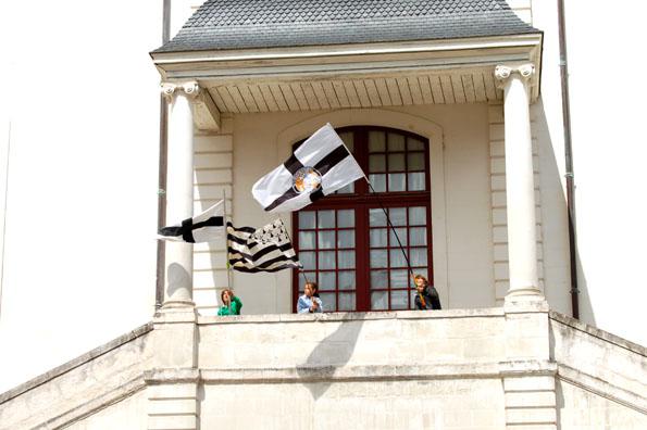 Afin de montrer que l'avenir de la Bretagne face à un État français centralisateur se situe clairement dans l'Europe ils ont déployé sur une des tours face à la ville un mur symbolique de drapeaux bretons et européens grâce au concours d'amis anglais, suédois, finlandais, autrichiens et russes !