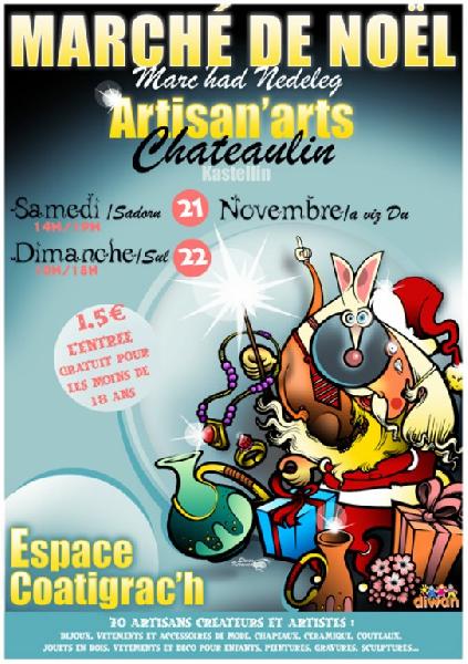 Marché de Noël « Artisan\\\'arts » à l\\\'espace Coatigrac\\\'h de Châteaulin. Samedi 21 novembre de 14h à 19h Dimanche 22 novembre de 10h à 18h. Entrée : 1,5€, gratuit pour les moins de 18 ans. Ticket d\\\'entrée valable tout le week end.