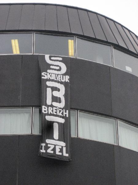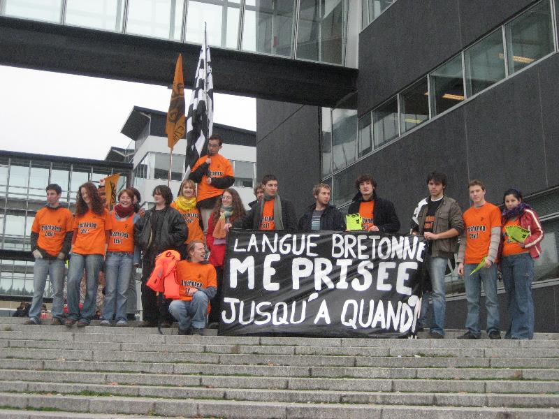 Ainsi, une banderole géante y a été accrochée afin de montrer qu'il est possible d'y mettre du breton. Un autre groupe portait une banderole portant l'inscription « Langue bretonne méprisée jusqu'à quand… ? ». D'autres personnes ont distribué 600 tracts aux étudiants afin d'expliquer la présence du collectif sur le campus.