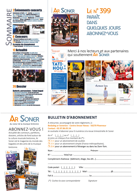 Bientôt un nouveau numéro du magazine Ar Soner. » Télécharger le bulletin d’abonnement PDF.