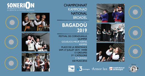 7 bagad du Finistère, 5 du Morbihan, 1 d’Ille-et-Vilaine… Après la première manche du championnat de 3e catégorie (Vannes, le 10 mars),13 bagad ou bagadig (550 musiciens) participeront à la seconde manche à Quimper, le 27 juillet, pendant le festival de Cornouaille.