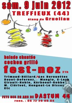 Samedi 9, Treffieux : Fête des 20 ans de Dastum 44 avec balade chantée apéritive à 17 h 30, repas champêtre à 19 h, fest-noz et lampions avec Trimaud-Béliard, Manglo, Davot-Defernez, Les Berouettes, Hengoat-Le Dissez, E-Lezh, Girault-Robin, Kerboeuf-Robbe, Charles Quimbert, Ronan Guéblez, Gildas le Buhé, Didier Auffray, le duo Barberine Blaise/Michel Maisonneuve, les Veuzous de la Presqu'île etc..., 21 h, étang de Gruéllau. Repas : 16 € et fest-noz : 4 €. Le fest-noz est offert aux participants au repas. Rens. et inscription : Daniel et Martine Lehuédé 06 81 49 29 02 - kerjane2@wanadoo.fr.
