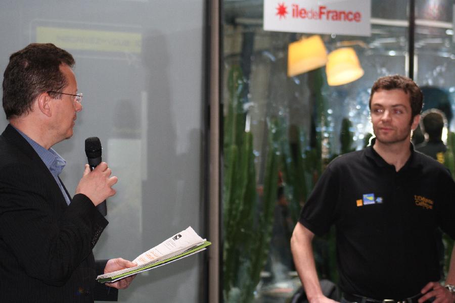 C'est ce « lieu hautement symbolique » de la Cantine, point de rencontre des férus de technologie à mi-chemin du Sentier et de la Bourse, que Samuel Tiercelin avait choisi pour mettre un coup de projecteur sur la sixième édition de L'Odyssée Celtique. L'aventurière Anne Quéméré, marraine de l'événement, le vice-président du Conseil régional de Bretagne Christian Guyonvarc'h, le député Marc Le Fur et même la romancière à succès Irène Frain étaient au premier rang pour assister au départ d'une soixantaine d'étudiants vers la Quête du Graal du XXIe siècle. Grâce à la magie d'Internet et du système de géolocalisation, ils ont pu suivre à distance les premières foulées de ces chevaliers des temps modernes partis à l'assaut de canoë pour la traversée de l'étang de Paimpont, première étape du parcours les menant à Tréhorenteuc.