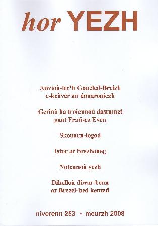 Anvioù-lec'h Breizh e-keñver an douaroniezh ..... Frañsez Kervella Gerioù, troiennoù ha frazennoù dastumet e penn kentañ an ugentvet kantved (A) ..... Frañsez Even Skouarn-logod .... Gwennole ar Menn Brezhoneg war ar pladoù ..... Gwennole ar Menn Brezhoneg en trenioù ..... Divi gKervella Ar ger "nesdamant" .... Tomaz