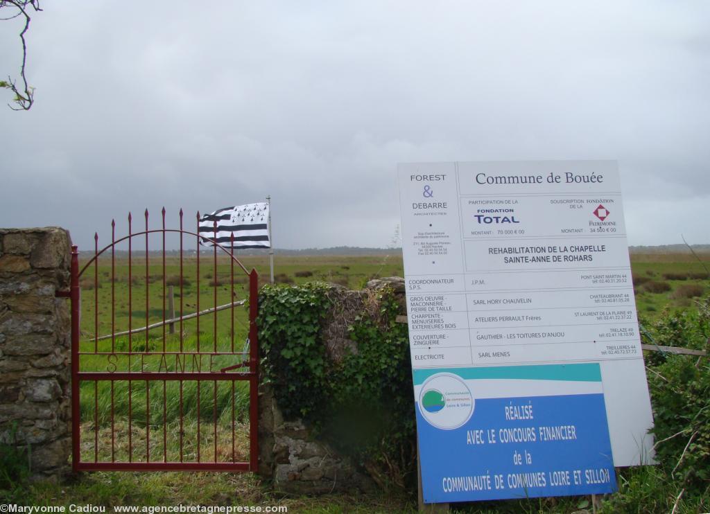La chapelle bretonne Sainte-Anne de Rohars à Bouée, située en bordure de Loire, a connu ce lundi une grande affluence pour fêter sa restauration.Cette chapelle est le dernier témoignage du prieuré de Rohars, attesté depuis 1330, tenu par des chanoines régis par la règle de saint Augustin, et qui dépendait de l'abbaye bénédictine de Pornic. Un prieuré est une petite structure, comprenant un prieur dirigeant plusieurs moines, chargée d'administrer les biens de l'abbaye éloignés de la maison-mère. Les biens administrés par Rohars se trouvaient à Bouée et Cordemais. Les offices religieux liés aux obligations du prieur, expliquaient, même quand le prieuré tomba en commende, le maintien de messes régulières à Rohars et donc la reconstruction de la chapelle en 1707 (bénie en juillet) lorsqu'elle fut soufflée par l'ouragan du 30 décembre 1705. Vendue à la Révolution avec les biens du prieuré, elle fut remise en état par la famille de Jean Legland, sans doute sa fille et ses fils, vers 1848 et une sacristie lui fut adjointe au sud. " Ce sont les fils qui d'ailleurs sont désignés comme propriétaire de la chapelle à cette époque. Encore que nous ne sachions pas réellement qui a payé l'ensemble des frais ", précise Alain Monnié à ABP. Elle continua à faire l'objet d'un pèlerinage et d'un pardon tous les 26 juillet jusqu'en 1963. En 1967, une tempête détruisit sa toiture puis elle tomba lentement en ruine http://cdfbouee.com/environs/steanne/chapelle.htm. La cloche de la chapelle, fondue en 1667 par le prieur Jean Robert, se trouve dans le clocher de Bouée en compagnie d'une plus grande de 1807. Toutes deux sont photographiées ici http://lafrancedesclochers.xooit.com/t53-Bouee-44260.htm