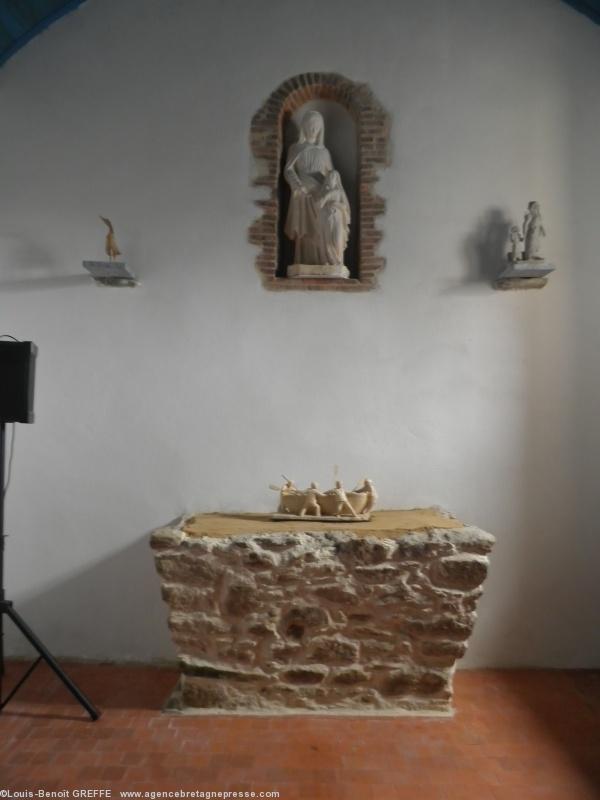 - Chapelle Sainte Anne de Rohars. Le nouvel “autel” et l’ex-voto de la SNSM sur du sable.