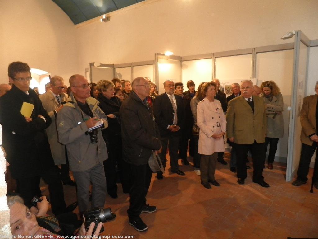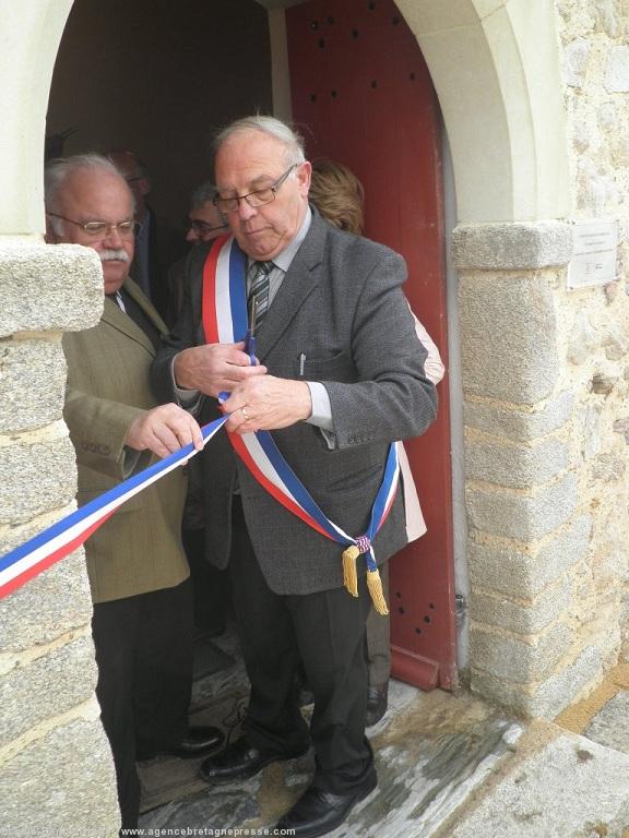 Après avoir assisté à la coupure du ruban tricolore à l'entrée de la chapelle par monsieur le maire, les invités et le public ont écouté les discours à l'intérieur, sur le fond sonore des bourrasques.