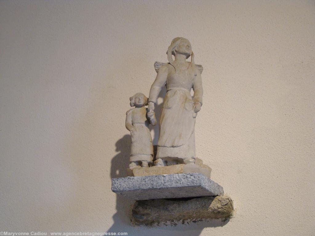 - Chapelle Sainte Anne de Rohars. À droite de l’“autel” plus haut une Bretonne en coiffe et collerette et son enfant.