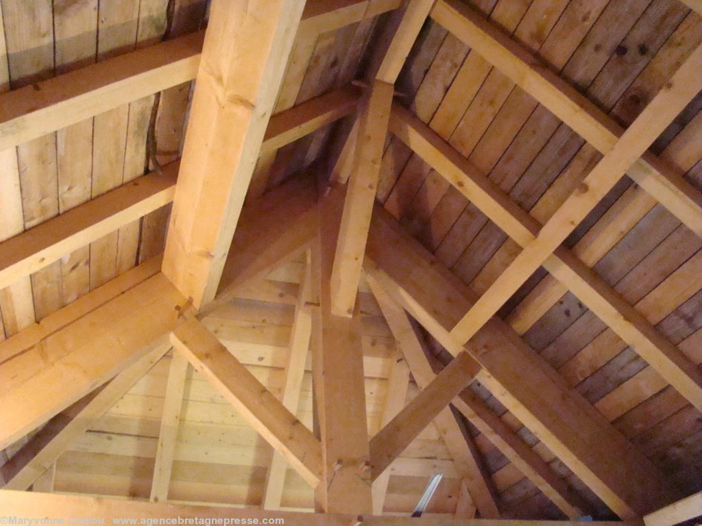 - <b>…Au plafond.</b> La charpente de la “sacristie”.