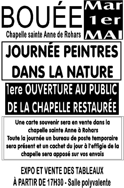 - Le 1er mai 2012 ouverture de la chapelle de Rohars. Festivités. Journée des Peintres dans la nature. Carte souvenir. Bureau de poste temporaire...