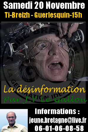 Dans le cadre du cycle de formation Jeune Bretagne, Jean Yves Le Gallou, de la fondation Polémia sera présent à Ti-Breizh le samedi 20 novembre.