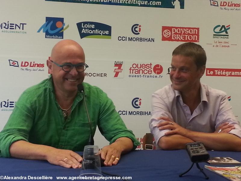 Après une embrouille de badge, rapidement réglée par les jeunes filles du bureau de presse, nous voilà avec nos pendentifs verts. Véritables sésames pour le Festival. Dans un petit salon, Yann-Fanch Kemener en élégante chemise verte... Une poignée de main chaleureuse, un court échange, heureux de se revoir après tout ce temps ! Croisé aussi dans les couloirs, Jean-François Bernardini, \'\'I Muvrini\'\', souriant et fort affable avec les dames. Tout à l\'heure en conférence, il ne répondra pas aux possibles questions des journalistes. Il s\'en ira, toujours souriant. Précédemment il nous avait appris que le groupe avait interrompu une tournée en Corse pour venir à Lorient et non sans nous avoir gratifié d\'un beau plaidoyer en faveur des cultures dites minoritaires.