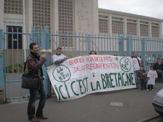 Nous appelons évidemment tous ceux qui le pourront à venir soutenir Hubert, Régis et Thomas, lors de leur procès au Tribunal de Grande Instance de Saint-Nazaire le vendredi 23 novembre à partir de 14h. Nous rappelons qu\'ils risquent jusqu\'à deux ans de prison et 30 000 euro d\'amende. La mobilisation de tous les partisans de la Réunification doit se faire autour des inculpés.