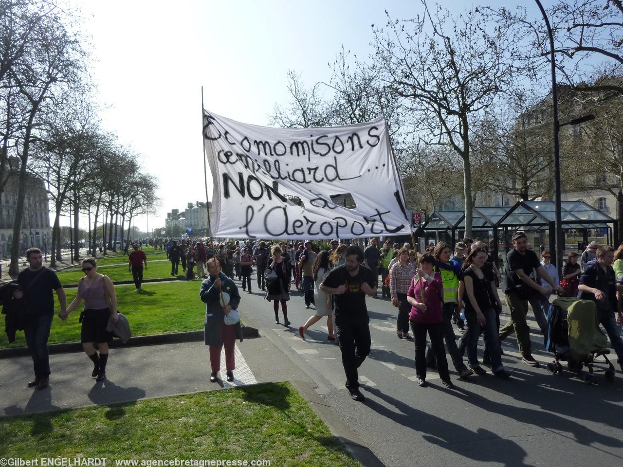 Samedi 24 mars a eu lieu une très importante manifestation contre l'aéroport, qui a réuni près de 6.000 personnes dans le centre-ville de Nantes, sur le cours des 50 Otages.Plus de 200 tracteurs et des militants anti-aéroport de toutes tendances ont défilé : militants d'associations et partis bretons contre l'aéroport, mais aussi écologistes, collectifs locaux (ACIPA, CEDPA, collectif d'élus doutant de la pertinence du projet aéroportuaire