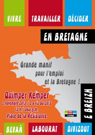 Nous manifesterons aussi et surtout pour l'emploi et la Bretagne. Pour une vraie régionalisation afin de nous doter des outils et des leviers nécessaires afin que la Bretagne construise son avenir. L'écotaxe est la goutte d'eau qui a fait déborder le vase. C'était un nouvel oukase venant de Paris. Nous exigeons plus de pouvoirs pour la Bretagne.
