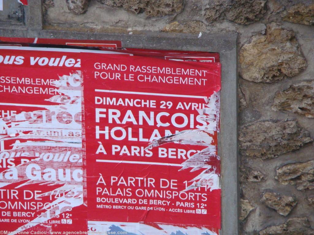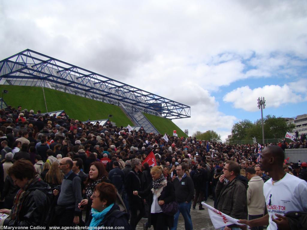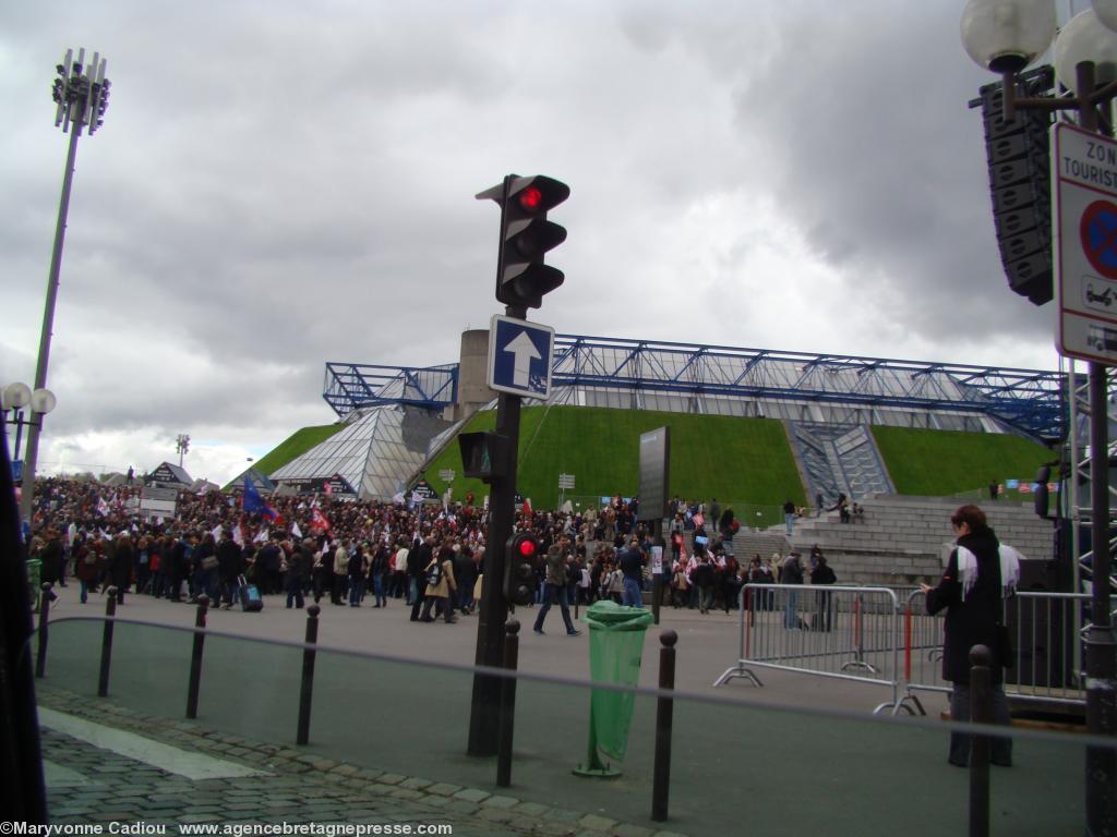Bretagne Réunie a fait dimanche à Paris Bercy une distribution de tracts au meeting de François Hollande entre 13 h et 15 h environ.Nous n'étions pas nombreux mais ce n'était pas l'énergie qui nous a manquée. À huit (Maryvonne Cadiou – comité local Nantes, Xavier Bellanger – comité local Rennes, Christine Britneff, Jean-Simon Mahé, Jacques Brohand, et moi – Comité local Paris ainsi que Nil Caouissin et Patrick de Sagazan de l'UDB Paris), nous avons distribué entre 1.500 et 2.000 tracts dans une foule compacte et plutôt indifférente. Partis de Nantes, nous étions arrivés, Maryvonne, Xavier et moi à Bercy vers 13 h et avons découvert qu'une foule de gens s'était déjà agglutinée devant les portes d'entrée du stade.