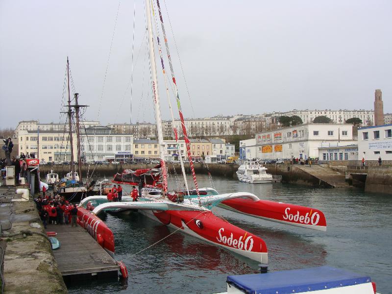 - Thomas Coville sur le ponton quai Malbert à Brest.