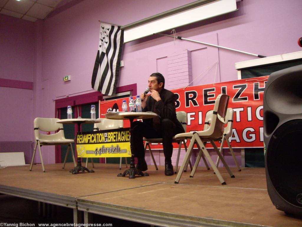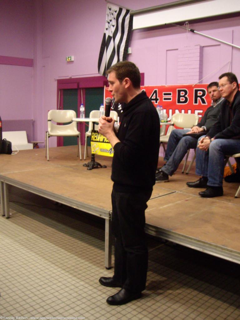 Le collectif 44=Breizh, organisateur de cette après-midi de débats et réflexions sur la stratégie à mener pour arriver à la réunification bretonne, avait très bien fait les choses. Devant une salle comble (environ 130 personnes) le géographe Jean Ollivro a planté le décor avec une magistrale analyse sur l'état de l'opinion bretonne et les enjeux économiques, sociétaux, culturels et environnementaux de la réunification, avec sa conférence "Qu'est-ce qui bloque ? Qu'est-ce qui débloque ?". La table ronde, animée par Jonathan Guillaume, a permis aux intervenants : Ronan Dantec (EE LV), sénateur de Loire-Atlantique et vice-président de Nantes Métropole, Christian Guyonvarc'h (UDB), conseiller régional, Yvon Ollivier, juriste (du pôle juridique de Bretagne Réunie) et Pierre-Yves Le Rhun, géographe, de donner leur point de vue sur les stratégies à mener pour faire bouger les lignes après l'amendement Le Fur – de Rugy (1). Le débat très riche qui a suivi a montré un large consensus des acteurs du combat de l'unité de la Bretagne. Patrick Mareshal, en tant qu'ancien président du Conseil général de Loire-Atlantique, a déclaré être confiant en l'avenir car « la réunification se fera ». L'avocat du collectif 44=Breizh Erwan Le Moigne, a rappelé, en tant qu'élu du PS en Loire-Atlantique (conseiller municipal d'opposition à La Baule / Ar Baol) qu'au sein de son parti il y avait un courant réel de partisans de la réunification. Il a appelé à la solidarité pour les six jeunes du collectif qui sont victimes d'un acharnement des services de la région dite des « Pays de Loire » pour quelques graffitis sur l'Hôtel de Région.