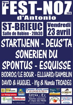 7ème fest-noz d'Antonio le vendredi 23 avril - de 20h30 à 3h - Saint Brieuc, salle de Robien,