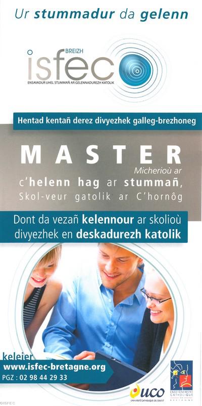 Master “Micherioù ar C'helenn” divyezhek ar Gelennadurezh Katolik Kinnig a ra an EUSGeK (ISFEC) abaoe gwengolo 2010 un hentad stummañ d'ar studierien pe d'ar supleanted o defe c'hoant dont da vezañ