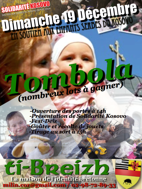 Le dimanche 19 décembre 2010, l'association Ti-Breizh organisera sa grande tombola au profit des enfants serbes du Kosovo, en partenariat avec l'association Solidarité Kosovo.
