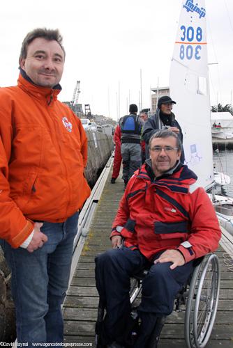 Durant cinq demi-journées, le Challenge Handivoile rassemble à l'occasion de la Route du Rhum sur le plan d'eau du bassin Duguay-Trouin, les meilleurs régatiers français handisport. Cette épreuve soutenue par la Banque Postale et organisée par la Société Nautique de la Baie de Saint-Malo et la Ville de Saint-Malo se déroule à bord du Miniji, un petit voilier de sport monoplace de 3,65 m inchavirable et insubmersible. Bien calés au raz de l'eau dans leurs cockpits, les 7 skippers engagés pour le Challenge Handivoile font claquer au vent la voile de leur Miniji, ce petit voilier de sport de 3,65m, particulièrement sûr et bien adapté aux personnes handicapées. De loin, rien ne distingue ces marins solitaires de leurs homologues valides qui partiront bientôt faire la traversée de l'Atlantique pour rallier Pointe-à-Pitre en Guadeloupe. Des deux côtés de la barre classique ou du volant aménagé, c'est la même passion de la mer et du dépassement de soi qui réunit les skippers. Conçu à la fois pour les valides et les handicapés le Miniji est un incroyable monoplace inchavirable et insubmersible extrêmement précis, pointu et difficile à manier. « Le Miniji n'est pas à proprement parler un bateau pour les débutants. Il a la particularité d'être très toilé, extrêmement sensible aux réglages et de réagir au quart de tour » rappelle Jean-Luc Mayer, président handisport pour la côte d'Émeraude et délégué départemental Handivoile. Côté concurrents, le challenge rassemble tous les matins sur les bassins du port de Saint-Malo les meilleurs régatiers français handisport, dont certains sont en pleine préparation pour les prochains Jeux Paralympiques de Londres 2012 : Hervé Larhant, médaillé d'argent à Pékin, Hervé Tourneux, six titres de champion de France Voile Handisport, vice champion de France en titre, Laurent Gourves, médaille de Bronze championnat de France Voile Handisport 2009 et champion de France Handisport 2010, Jean-claude Mirc et Paul Le Guen, régatiers accomplis, Gérard Eychenne, 3 fois champion de France et Kévin Cantin, jeune espoir Français Paralympique. « Pour cette première édition, j'ai volontairement fait appel à des marins de haut niveau. Notre objectif est de pérenniser le challenge pour qu'il devienne un rendez-vous régulier à chaque Route du Rhum- La Banque Postale » explique Jean-Luc Mayer.Voile de haut niveau Support officiel du championnat de France Handivoile, le Miniji est un bateau très polyvalent qui se pilote soit avec les pieds grâce au principe du palonnier, soit avec un volant. Pour éviter tout chavirage, un lest de 52 kg a été placé dans sa quille. Jean-Claude Mirc est paraplégique suite à un accident de voiture. Originaire des Pyrénées, il pratique depuis 10 ans la voile de haut niveau. « C'est ce sport qui m'a réellement remis d'aplomb. Lorsque nous faisons des compétitions avec des valides, il arrive que les handicapés montent en premier sur le podium » explique t-il, non sans une certaine fierté. Un peu plus loin sur le ponton, Yvonnick Berthaud de la société Aqua Transfert, handicapé lui-même et ancien sportif dans la catégorie Miniji, s'apprête à installer à l'aide d'une potence spécialement étudiée à cet effet un concurrent dans son bateau. « Notre entreprise aide les municipalités à penser et à concevoir des aménagements portuaires en faveur des handicapés. A ce jour, plusieurs villes ont déjà sauté le pas, Plouer-sur-Rance, La Rochelle et pourquoi pas bientôt Saint-Malo ». En attendant que tous les ports de France adoptent des infrastructures permettant aux handicapés de pratiquer la voile dans les meilleures conditions possibles, les marins du Challenge Handivoile nous donnent pendant ces cinq demi-journées de régate une grande leçon de courage et d'humilité. Rendez-vous vendredi 29 pour la remise des prix. Pour retrouver toutes les informations de la course : http://www.routedurhum-labanquepostale.com et http://www.labanquepostale.fr Également sur : http://www.handisport-saintmalo.org