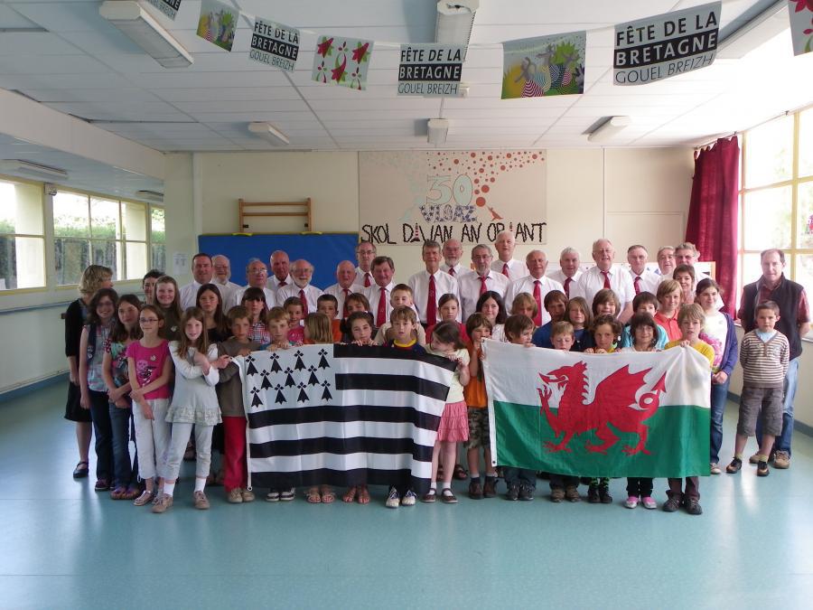 A l\'occasion de la Fête de la Bretagne et dans le cadre de la tournée \"Bretagne-Pays de Galles, chantons ensemble !\", le choeur gallois Côr Meibion Blaenporth s\'est arrêté le 17 mai dernier à l\'école Diwan de Lorient.