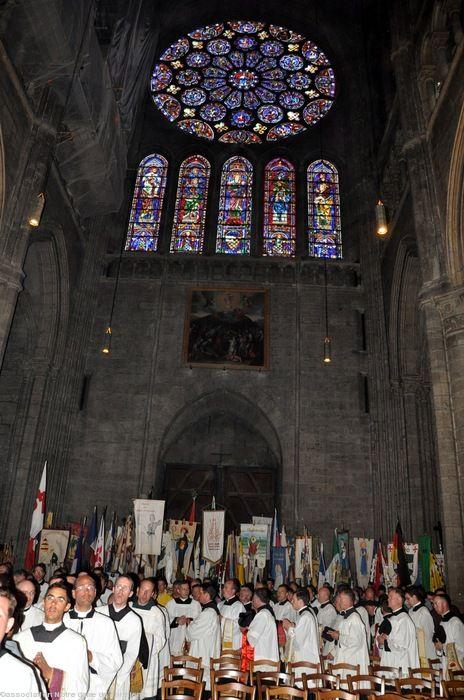 Cette année, et ce pour la 30e fois consécutive, le week-end de Pentecôte a été l'occasion pour 8 à 10.000 pèlerins de relier à pied les quelques cent kilomètres qui séparent les cathédrales Notre-Dame de Paris et Notre-Dame de Chartres. Organisés en chapitres (groupes d'une vingtaine de personnes), les pèlerins ont accouru de France et de Bretagne, ainsi que des quatre coins du monde.Parmi les pèlerins, 1000 environ venaient des cinq départements bretons. Parmi eux, beaucoup de jeunes, qui représentent par ailleurs d'année en année deux tiers des pèlerins : ceux-ci viennent pour un gros tiers d'Ile de France, et beaucoup d'étranger (Irlande, Allemagne, Argentine, Australie). La Bretagne qui honore depuis toujours la tradition du pèlerinage (Notre-Dame d'Auray, le Mont Saint-Michel) était représentée par 8 chapitres bretons, venus en grande partie dans des cars affrétés pour l'occasion. Cette année on pouvait donc voir les chapitres Saint Louis-Marie Grignion de Montfort et Sainte Anne de Rennes ; Saint Patern pour Lorient et Vannes ; Saint Corentin pour Quimper ; Saint Yves pour Saint-Brieuc ; Bienheureux Marcel Callo et Sainte Faustine pour Nantes ; Sainte Jeanne Jugan pour Saint-Malo et Dinan et enfin Saint-Pierre-aux-Liens du chantier de jeunes organisé par Reynald Sècher autour de la chapelle Saint-Pierre à la Chapelle-Basse-Mer.