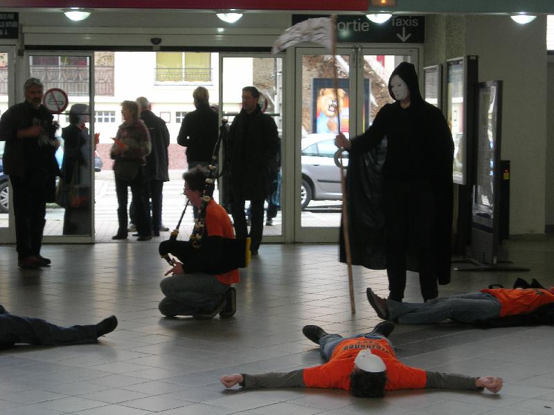Ur wech oc\'hpenn eo bet spurmantet an Ankou ha korfoù orañjez marv war leur un ti-gar. Adlañset eo bet oberennoù Ai\'ta ! Bro Gwened gant un \"die-in\" d\'ar sadorn 15 a viz Kala-Gouañv en Oriant.