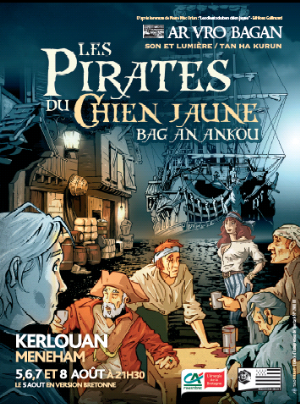 Savet eo bet ar pezh c'hoari « Bag an Ankou » diwar romant brudet Per Mac Orlan « Les Clients du Bon Chien jaune ». E-pad daou vloaz eo bet disklêriet ar pezh e galleg-brezhoneg, e añv o vezañ « Les Pirates du Chien Jaune », e Meneham, Kerlouan, e Kastell Perzell e Plougonvelen hag er Vadalenn e Brest.