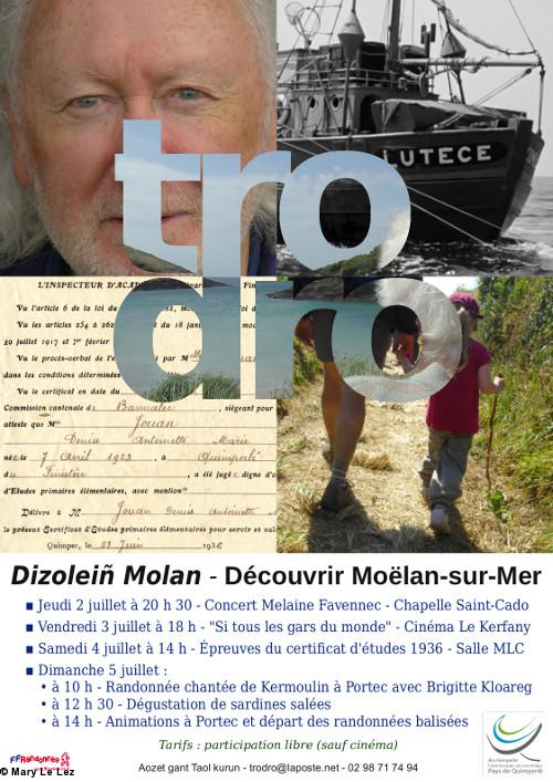 Le Tro Dro cette année dure quatre jours en pays de Moëlan, concert le jeudi, cinéma le vendredi, certificat d'études le samedi et rando chantée sur les pas de Denise Le Franc, bretonnante de 93 ans le dimanche. Une belle occasion de découvrir un petit pays de Cornouaille...