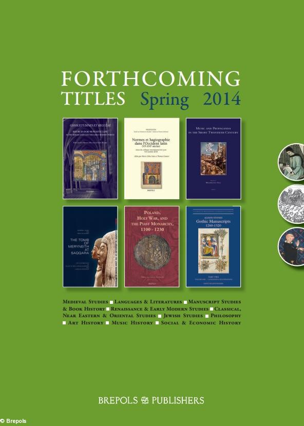 Catalogue des publications de Brepols (Turnhout en Belgique) en projet pour le printemps 2014