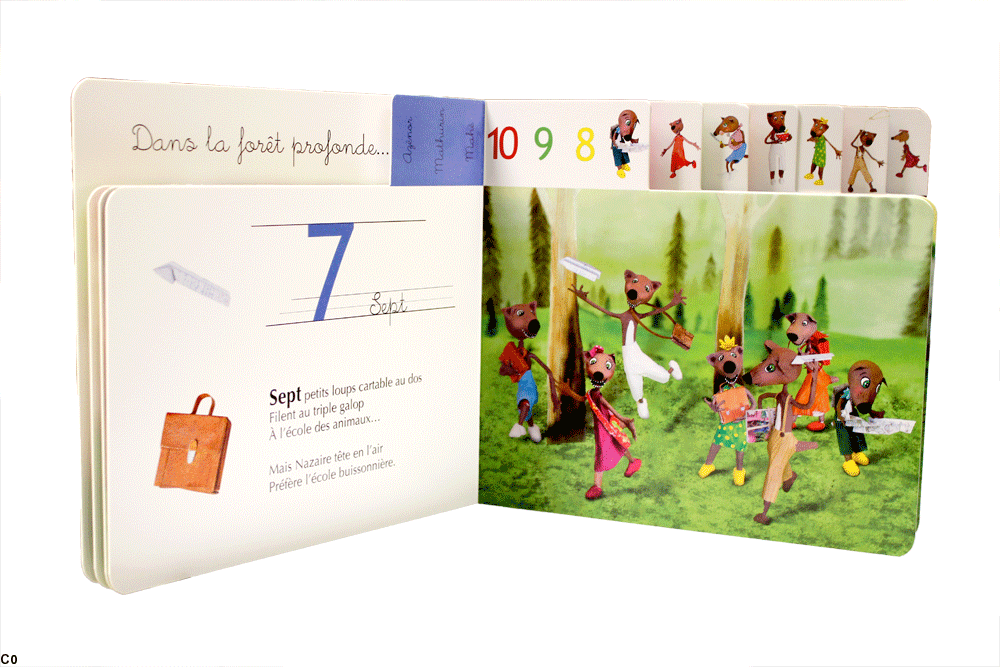 Un système de dix onglets entraîne l'approche de la notion de soustraction : à chaque onglet, à chaque page tournée, un loup disparaît. Le joli texte de Corinne Boutry est servi par les magnifiques mises en scène en papier mâché d'Aline Pallaro.