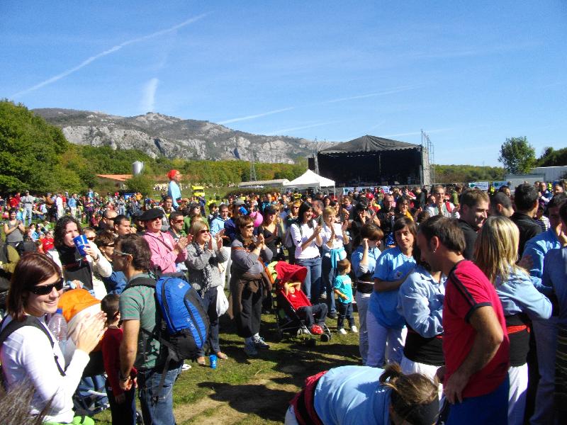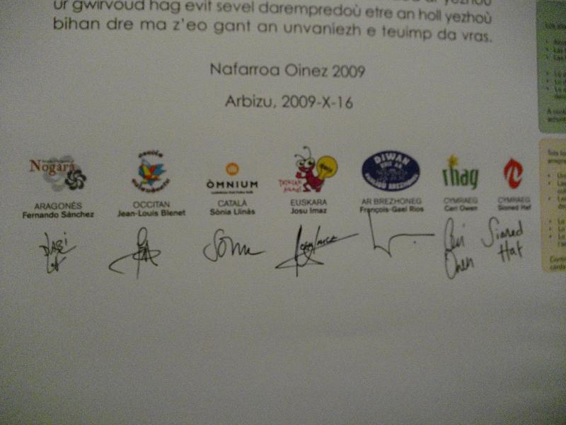 Vieilles Charrues ? Tro Menez Are ? C'est un peu des deux, avec du basque partout. Imaginez : uniquement des groupes basques sur six scènes (hormis trois groupes en catalan et occitan) qui ne chantent qu'en langue basque sur les six scènes installées, 10 km de parcours sur la route (accès aux poussettes, aux personnes handicapées, et pas de destruction de sentier avec un tel passage), trois villages traversés.Hélicoptère qui surveille, parkings fléchés par la police et les bénévoles. Gratuit, chacun met dans une boîte ce qu'il veut (des pièces pour les jeunes, souvent des billets pour les adultes). Musique, gastronomie, stands politiques et culturels, et pour les Basques, c'est cinq fois dans l'année (quatre autres manifestations d'égale ampleur dans chacune des provinces basques) ! Il n'y a qu'un permanent pour cette fête et près de 3.000 bénévoles. Les bénéfices (qui peuvent atteindre un million d'euros) vont à la construction ou à la rénovation des écoles Ikastola de Navarre. Et oui, la langue basque a un statut, mais les locaux restent à la charge des Ikastola (écoles en langue basque). Une délégation bretonne y était invitée, et les 5 pays (Catalogne, Occitanie, Pays de Galles, Aragon, Bretagne) ont signé une déclaration officielle voulant rassembler les différentes langues minoritaires d'Europe autour de l'idée de "normalisation" des langues minoritaires (égalité des droits culturels et linguistiques) à l'image de la petite luciole, mascotte de la fête, qui même si elle est toute petite, répand beaucoup de lumière autour d'elle... Convivialité, échanges, politique et culturel mélangés. Le pays basque connaît actuellement une période difficile : crise, manque de formation des jeunes, province de Navarre qui freine l'élan des bascophones, parti basque en minorité dans la province autonome, problèmes de liberté de presse avec un journal qui est suspendu depuis... sept ans, et dont le directeur actuellement à la tête du journal en langue basque, Berria (48 pages d'info en langue basque tous les jours !) a dû subir des interrogatoires musclés. Pourtant, la langue basque a de beaux jours devant elle : 80 % de transmission familiale, une culture de la solidarité et de la convivialité, des écoles dynamiques qui innovent, des cours de basque pour les adultes florissants (15.000 élèves). À nous en Bretagne, d'en tirer des leçons pour l'avenir de notre langue. Les Gallois ont demandé aux Bretons : "who are the fighters for the breton language ? ". - Diwan, Ai'ta ? Diaes eo da respont ... La réponse est difficile. http://www.nafarroaoinez.net/ et http://www.eitb.com/infos/societe/detail/268856/la-navarre-marche-pour-les-langues-minoritaires/