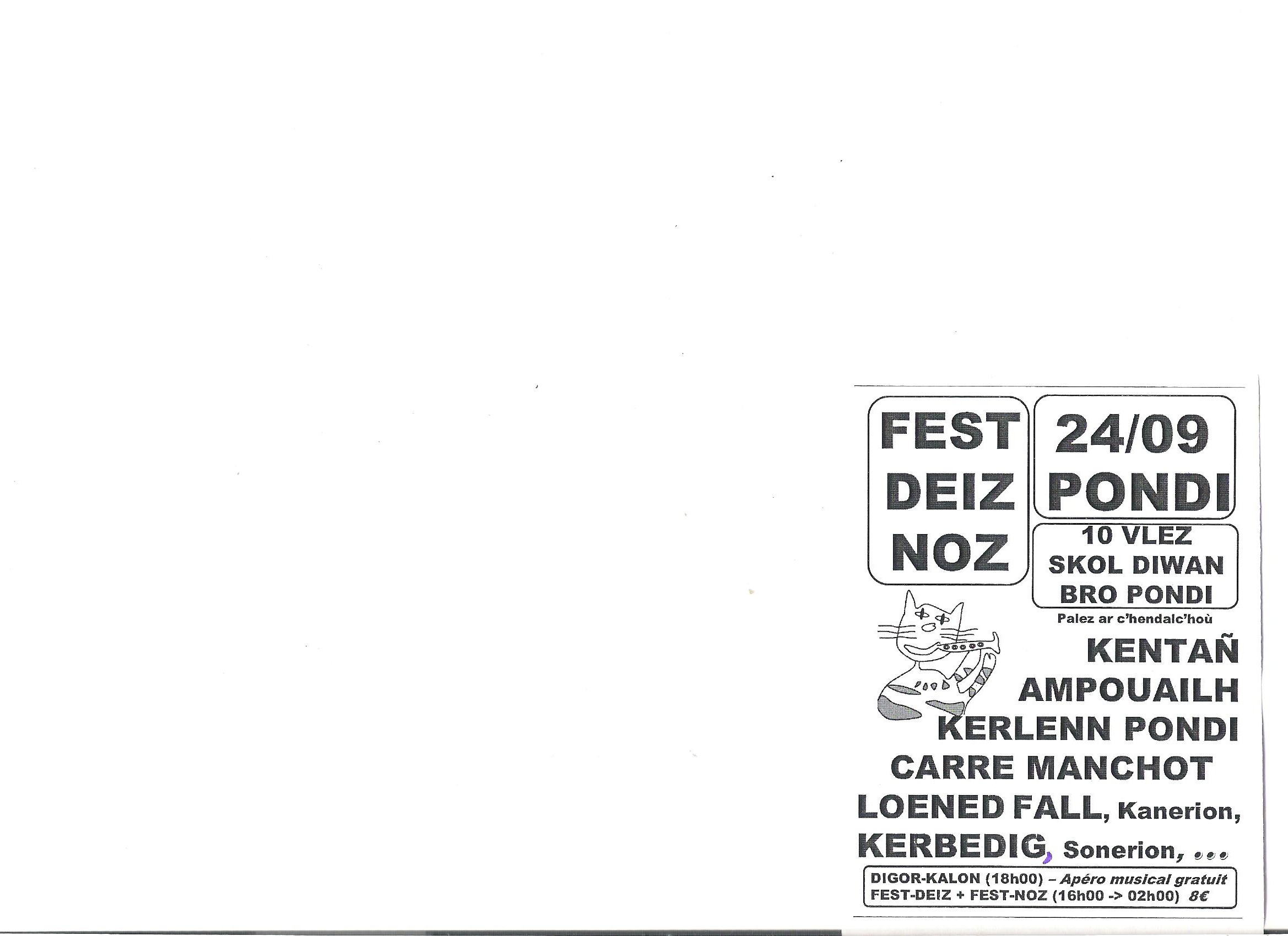 Le samedi 24 septembre l'école Diwan Pondi avec ses 70 élèves fêtera ses dix ans au palais des congrès de Pontivy. Dix heures de musique sont au programme. De 16 heures à 2 heures se succèderont fest-deiz, apéro concert et fest-noz animés par 7 groupes. Un cd est actuellement en préparation avec les élèves et sortira bientôt.