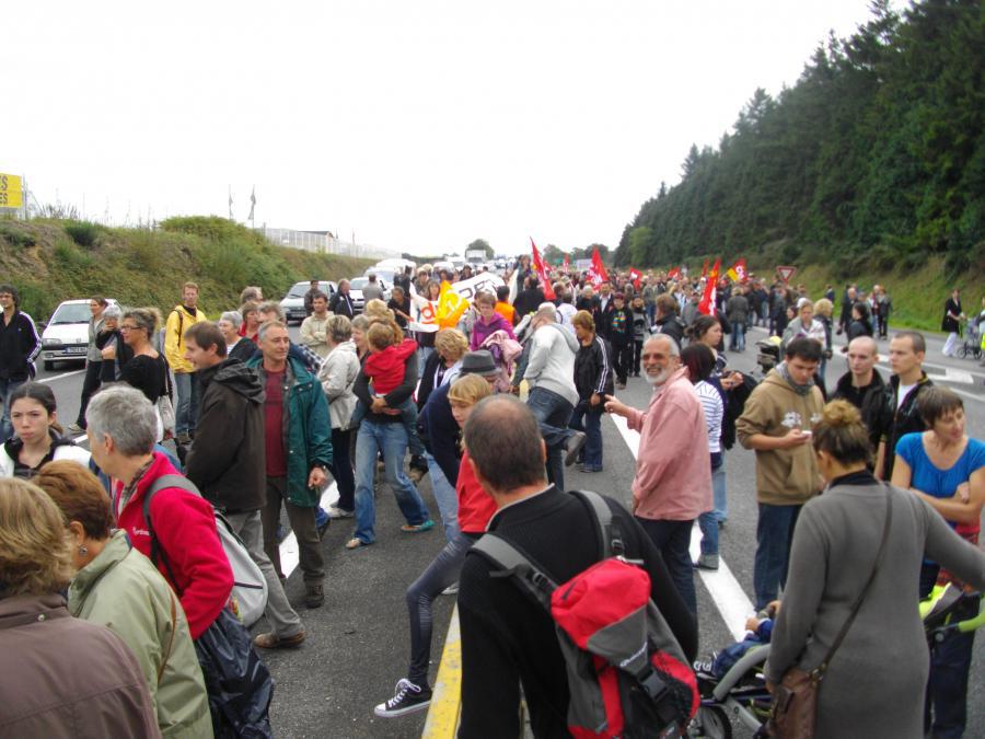 Une poignée de manifestants a dévié le trajet prévu pour la manifestation et est allée bloquer la voie express des deux côtés, très vite rejoints par la moitié des manifestants. Pendant au moins vingt minutes, ils ont entraîné des kilomètres de bouchon de chaque côté.
