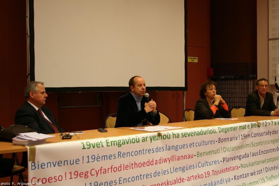 Pour Jean-Pierre Thomin, vice-président PS du Conseil Régional et chargé de la langue bretonne, le projet est passé à la trappe. Abordant le problème des contenus audiovisuels en Bretagne, il a demandé le rapatriement d'une partie de la redevance. Devant l'inquiétude générale qui a suivi le silence sur les langues régionales après le départ de la ministre de la Culture Christine Albanel, Françoise Louarn (UMP), conseillère régionale mais qui représentait le député Christian Ménard, qui ne pouvait pas être présent, a dévoilé que Catherine Pégard, conseillère culturelle de Sarkozy, ainsi que Marc Le Fur lui avaient affirmé que le projet de loi était presque finalisé.
