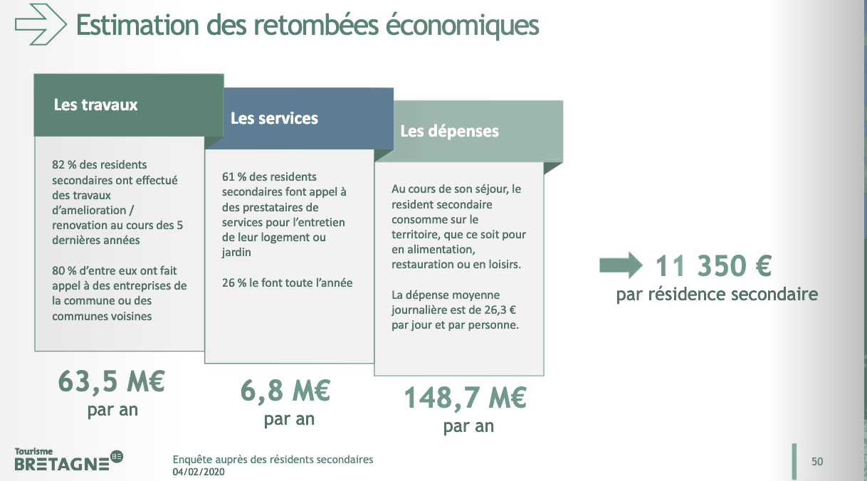 Le Comité régional du Tourisme en Bretagne a pour la première fois commandité une étude sur l'impact des résidences secondaires sur la région https://fr.calameo.com/read/000001315096a84ac0384?page=1 . L'étude a porté sur les communes d'Arzon, Carnac, Erquy, Pléneuf-Val-André, Plouguerneau, Roscoff, Saint-Quay-Portrieux, Perros-Guirec, Landéda et Trébeurden. Le drame de la résidentialisation du littoral breton a été traité par plusieurs géographes dont Pierre-Yves Le Rhun et Yves Lebahy dans Géographie et Aménagement de la Bretagne, éditions Skol Vreizh et en 2014 dans la Géographie numérique de la Bretagne https://www.skolvreizh.com/wiki/G%c3%a9ographie_de_la_Bretagne/Le_tourisme#La_r.C3.A9sidence_secondaire.2C_un_ph.C3.A9nom.C3.A8ne_lourd_en_Bretagne . A noter aussi la carte du littoral breton de notre confrère NHU https://www.nhu.bzh/residences-secondaires-bretagne/