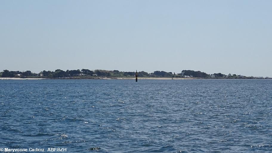 - 41- Vue du tombolo, recouvert à marée haute, vers l'île Bananec.