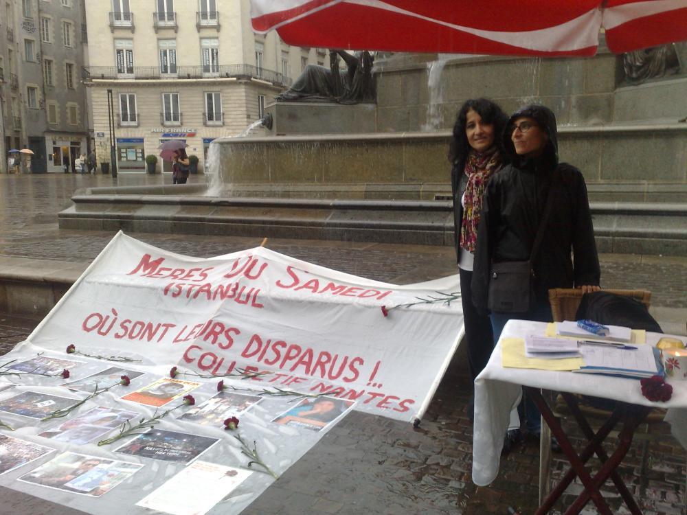 Samedi 3 novembre, les "Amis du collectif en soutien aux Mères du samedi et contre les crimes d'honneur en Turquie" seront place Royale de 14 à 17 heures pour proposer aux Nantais de signer une pétition de soutien aux familles de disparus.