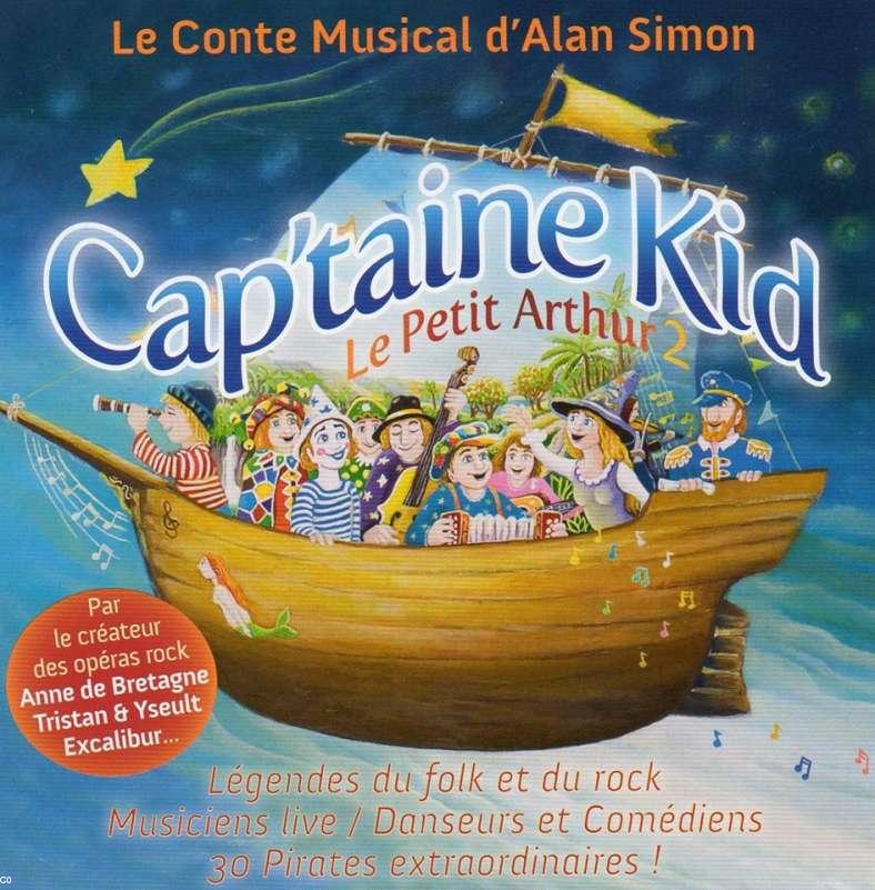 "Présentation" "Cap'taine Kid" (Conte musical) Alan Simon crée le conte musical Cap'taine Kid (suite du conte Le petit Arthur créé 20 ans plus tôt) au théâtre Océanis de Ploemeur. Mis en scène par Alan Simon et chorégraphié par Nikolay Androsov, ce conte est réalisé en faveur de l'Association Pour Killian (enfants touchés par le syndrome d'Angelman) dont il est le parrain. Suite à ce spectacle un album de 12 titres originaux avec un DVD live a été réalisé durant l'été 2014 avec Tristan et Christian Décamps (Ange), Jeremy Spencer (Fleetwood Mac), Jesse Siebenberg (Supertramp), Siobhan Owen, Roberto Tiranti, Kohann, Alan Simon...