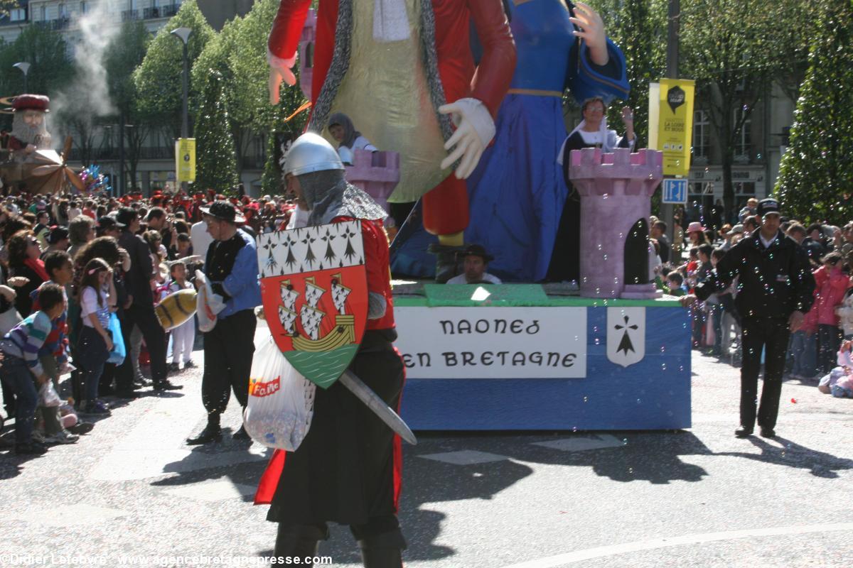 Alan Simon en héros, applaudi par 300 000 personnes, un char Anne de Bretagne, à l'avant duquel est inscrit "Naoned en Bretagne", mais le programme officiel annonce ce char comme représentant le rattachement de la Bretagne à la France.