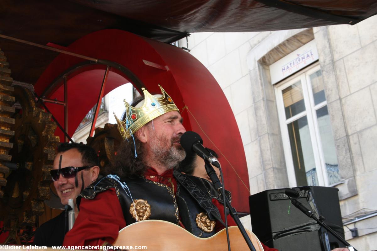 Tout se déroule formidablement bien pour l'édition 2105 du carnaval à Nantes. Environ 300 000 personnes attendues pour voir les trois défilés, celui de ce jour était le premier. Un roi, Alan Simon http://www.simonalan.com/ avec ses amis de tous ses grands spectacles, inaugurant le défilé, sur un char en l'honneur d'Excalibur. Plus loin, un char dédié à Anne de Bretagne et au roi Louis XII. Créé par l'association Les Alans, dont le président Alan Codet est un fier défenseur d'une Bretagne à cinq départements. De la Bretagne, en un mot. Ce char était précédé d'un Gwenn ha Du.300 000 personnes ont applaudi (ou vont applaudir) des airs de Excalibur et de Anne de Bretagne