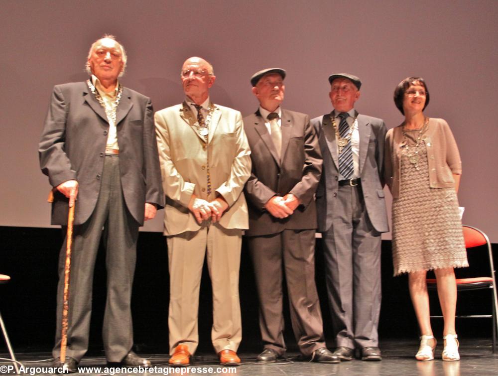 Albert Boché, Yves Lainé, Ivonig Le Merdy et les frères Morvan ont reçu, hier à Guingamp, le Collier de l'Hermine. Instauré par le duc Jean IV, le Collier de l'Hermine distingue
