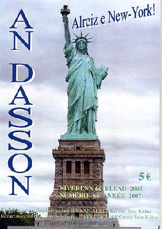 Au mois de mars passé 55 Alréens et Alréennes sont allés à New-York : des membres de la Kevrenn Alré. Leur but ? Défiler sur la Cinquième avenue lors de la Saint Patrick. Et sonner sur la scène du célèbre Carnegie Hall : ce sont les premiers Bretons qui y ont joué et dansé (dans la salle aussi, ce qui est défendu). Les Alréens ont visité New-York, rencontré d\'autres Bretons (ceux de l\'association BZH New-York); marché sous la neige; fait danser les New-Yorkais dans Central Park; visité la tombe de Benjamin Franklin à Philadelphie, etc. Pour en savoir plus sur leurs aventures, l\'équipe d\'An Dasson a interviewé deux personnes : Chantal Simon, maire-adjointe d\'Auray, partie accompagnée la Kevrenn Alré; et Bruno Le Berre, sonneur à la Kevrenn. Les deux interviews sont en breton et en français. An Dasson est en vente (5 euros) dans les magasins Breizh ma Bro; Presse, face à la gare (Auray); Lenn ha dilenn (Vannes); Coop Breizh (Lorient). Ou auprès de l\'association Sten Kidna, 8 rue Joseph Rollo, 56400 Auray. 7 euros, port compris.