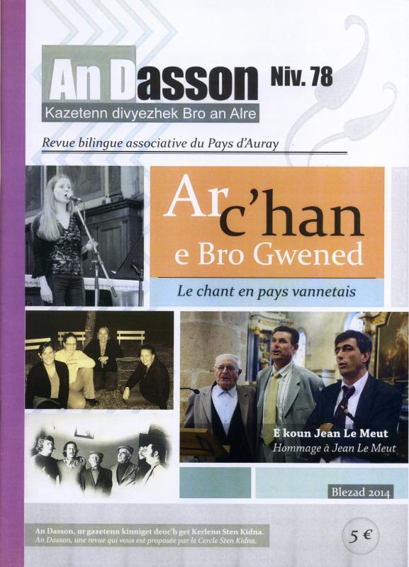 Chaque année, une petite équipe de l'association Kerlenn Sten Kidna vous propose des sujets denses et variés dans la revue bilingue (breton-français), An Dasson. Le tout dernier numéro, 78, qui vient de paraître, est consacré au chant en pays vannetais et comprend un hommage à Jean Le Meut, à travers une interview de son fils, Dédé Le Meut, ainsi qu'un article de fond s'appuyant sur des entretiens avec plusieurs chanteurs connus du pays : Jorj Belz, an Diaoulezed, Gaël Lorcy, Yann Raoul, Nolùen er Vuhé. Des numéros ont ainsi été consacrés à des communes du pays d'Auray telles que Locmariaquer (n° 72) et Pluvigner dernièrement (n° 76), à des thèmes comme les contes du pays (n° 73, avec un CD), la toponymie (n° 74), le créole (n° 75), ou encore aux écrits de certains auteurs tels que Patrick Dréan (n° 71) et David Le Roux (n° 77).