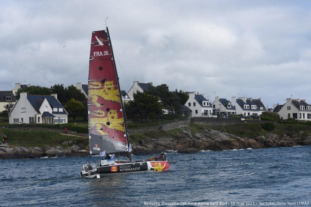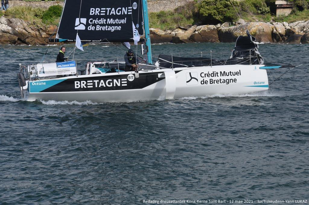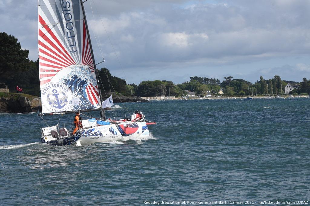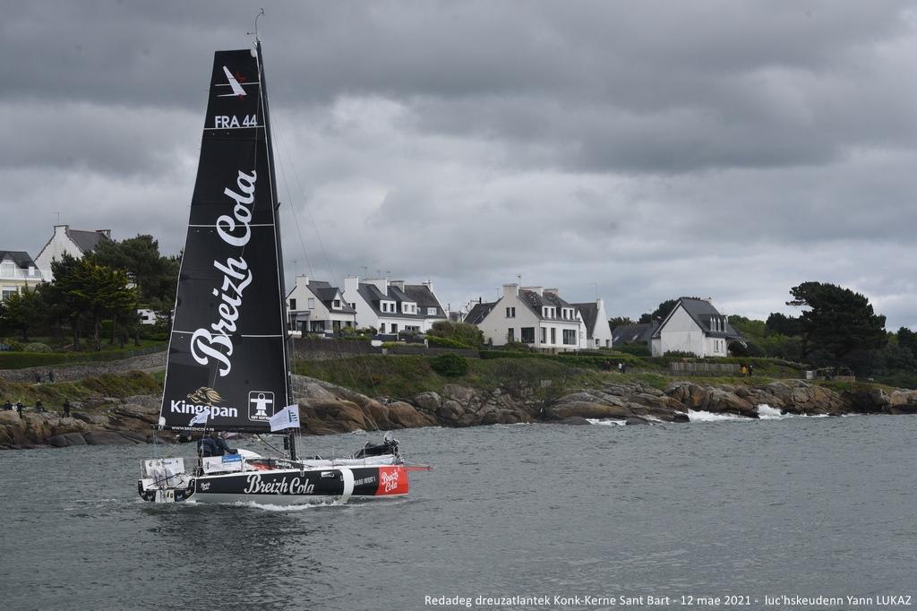 Gwall-amzer a-raok an disparti.Daleet rak ar gwall-amzer, ha rak-se goude ur rakredek e bae ar Forest-Fouenn (Penn-ar-Bed), ez eo aet kuit an triwec’h redermor er-maez eus porzh Konk-Kerne, unan hag unan, dirak un engroez bihan. Yenig e oa an amzer. Un tamm avel a lakae ar c’houmoul skañv o redek en oabl. Kenavo Breizh, emgav a vo a-benn teir sizhunvezh (war-dro penn-kentañ miz Even) en tu all d’ar meurvor atlantel.